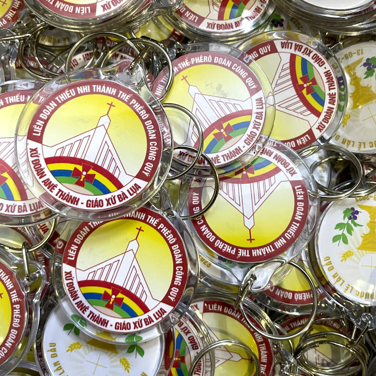 Chất liệu mica trong in 2 mặt. Bề mặt được phủ bóng, xuất xứ từ Việt Nam. Là sản phẩm dùng để móc vào chìa khóa, balo, túi xách… thích hợp làm quà tặng khách hàng với chi phí cực rẻ. Lưu ý nên hạn chế tiếp xúc với nước và hóa chất thường xuyên.